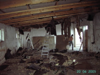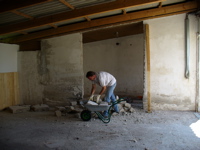 wurde vergipst und frisch gestrichen. Für den Boden sind 28 Tonnen