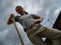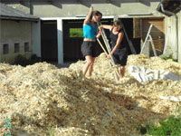 Sand und eine Ladung Hobelspäne verteilt worden. Mit Schaufel und
